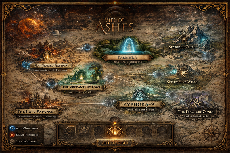 Long ago, many worlds were connected by ancient gateways known as the Thresholds. These crossings allowed travel across planets and time, uniting distant civilizations. Through the Thresholds, races traded knowledge, formed alliances, and fought wars that shaped the universe together.